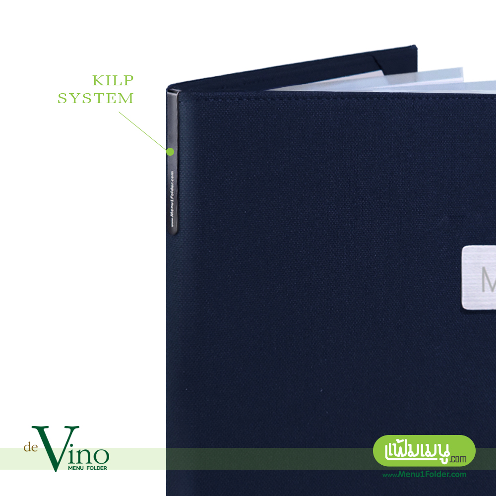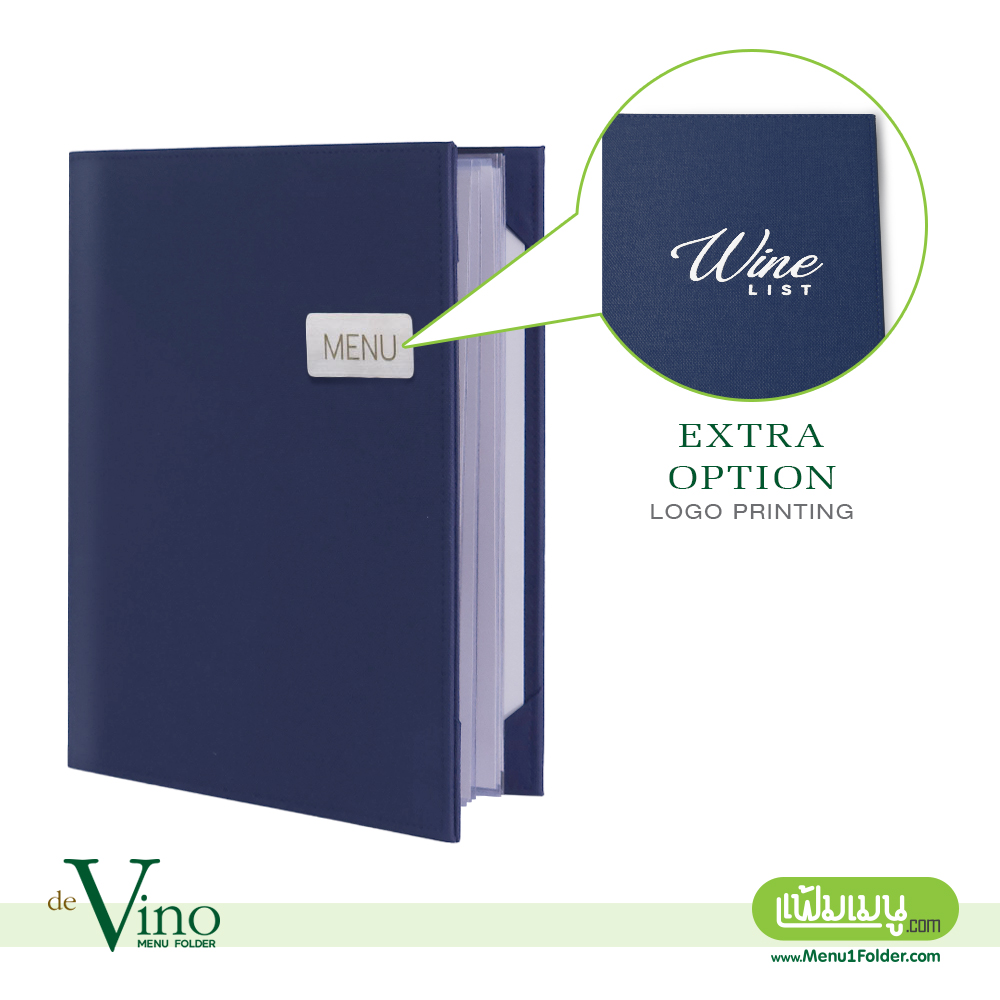 Do you want logo?: The navy blue leather menu folder, Klip Vino model, has an optional add-on for restaurants that want to print their logo on the folder cover. Using UV embossed printing for sharp, clear images. The minimum order of just 10 books (additional charges apply), feel free to contact us to discuss and inquire about details.