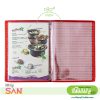 100% Recycle Menu Cover : ปกแฟ้ม ทำด้วยพลาสติก Recycle 100% ดังนั้นการเลือกใช้แฟ้มเมนูนี้เป็นช่วยลดปริมาณขยะที่จะออกสู่ทะเลไปในตัว ท้้งนี้เพื่อความสนุกสนาน ลวดลายจะมีการปรับเปลี่ยนในแต่ละ lot การผลิตแฟ้ม โดยเราจะยังคงมีเส้นยืนที่มีสีหลักคงไว้ตลอด