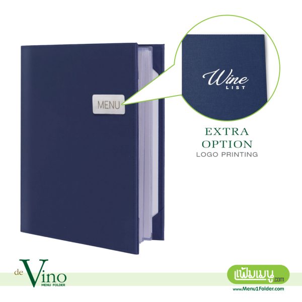 Do you want logo?: แฟ้มเมนูปกหนังสีน้ำเงิน รุ่น Klip Vino มี Option เสริมสำหรับร้านค้าที่ต้องการพิมพ์โลโก้ลงบนปกแฟ้ม โดยระบบการพิมพ์ UV สีนูน คมชัด ขั้นต่ำเพียง 10 เล่ม (มีค่าใช้จ่ายเพิ่มเติม) สามารถทักมาพูดคุย สอบถามรายละเอียดได้