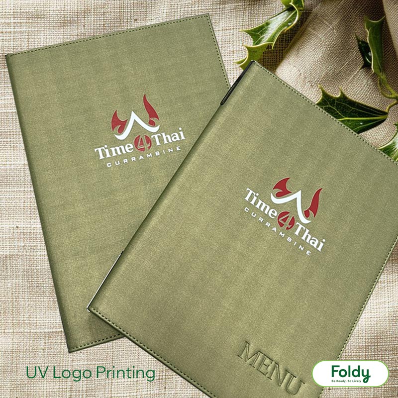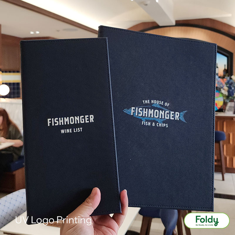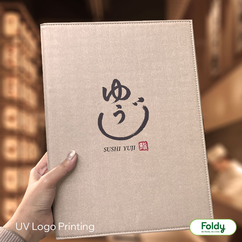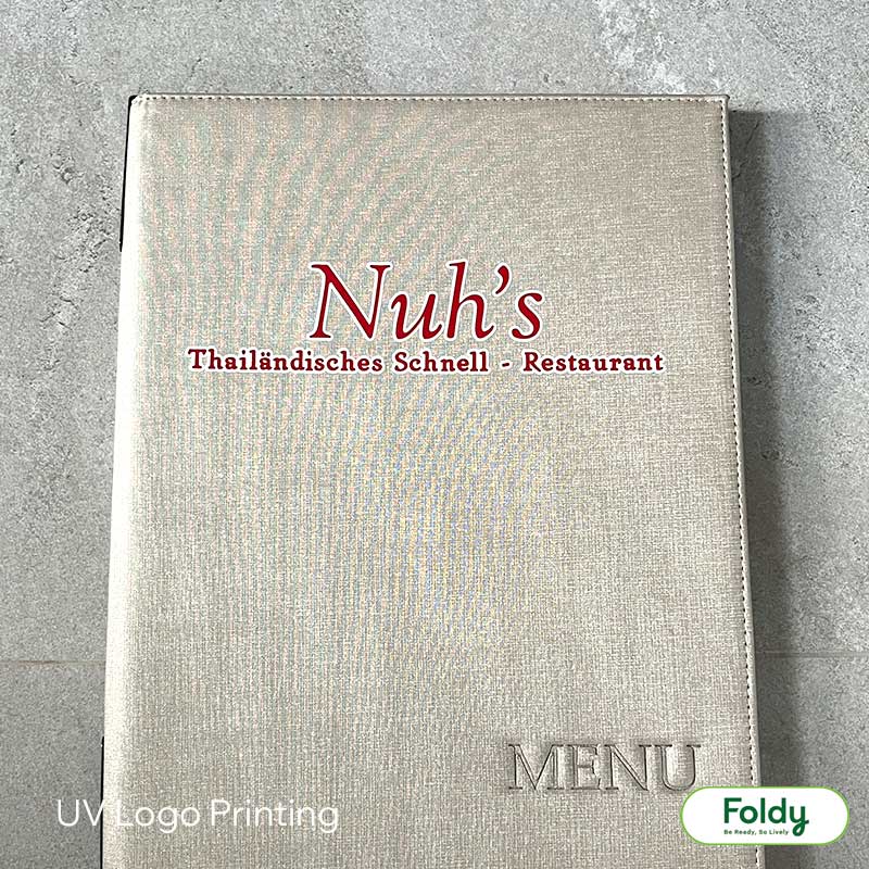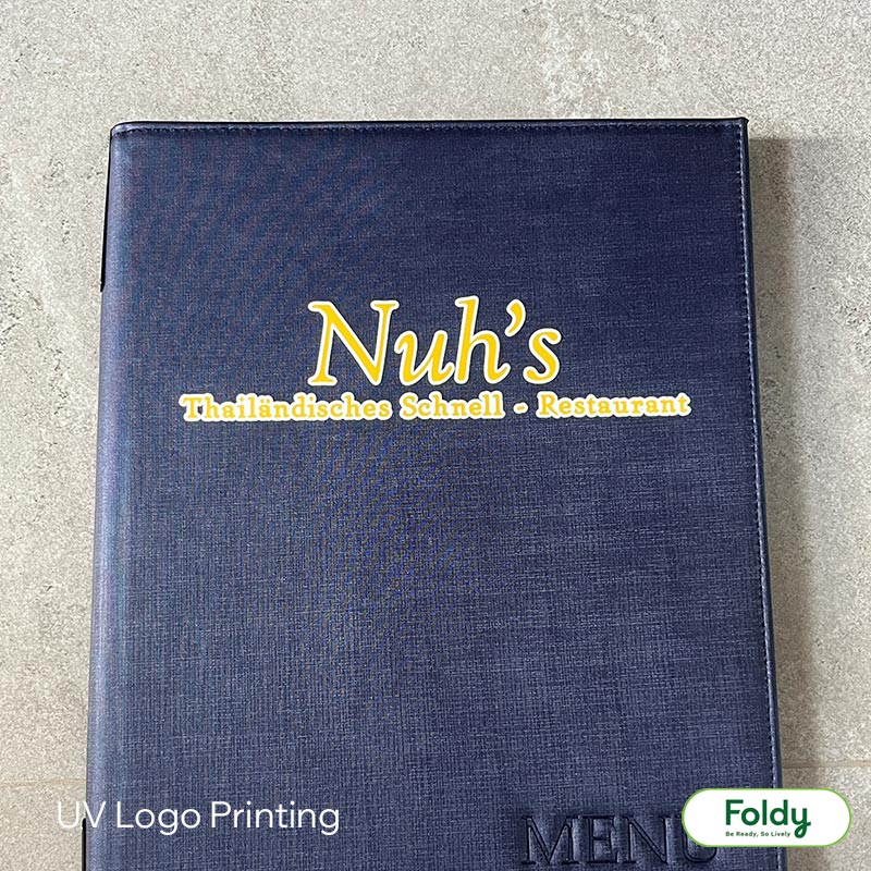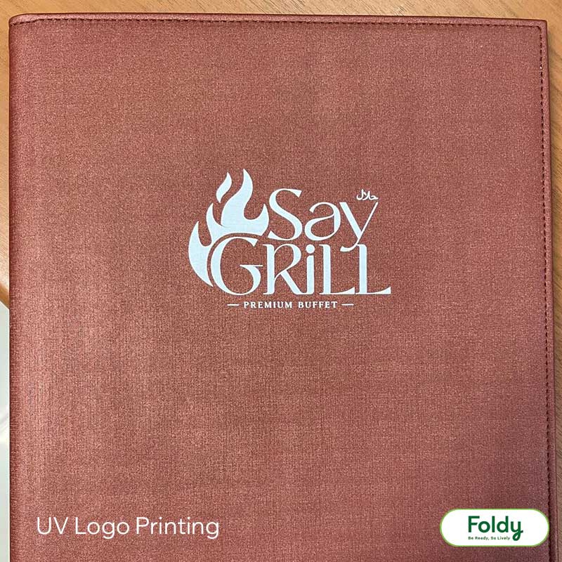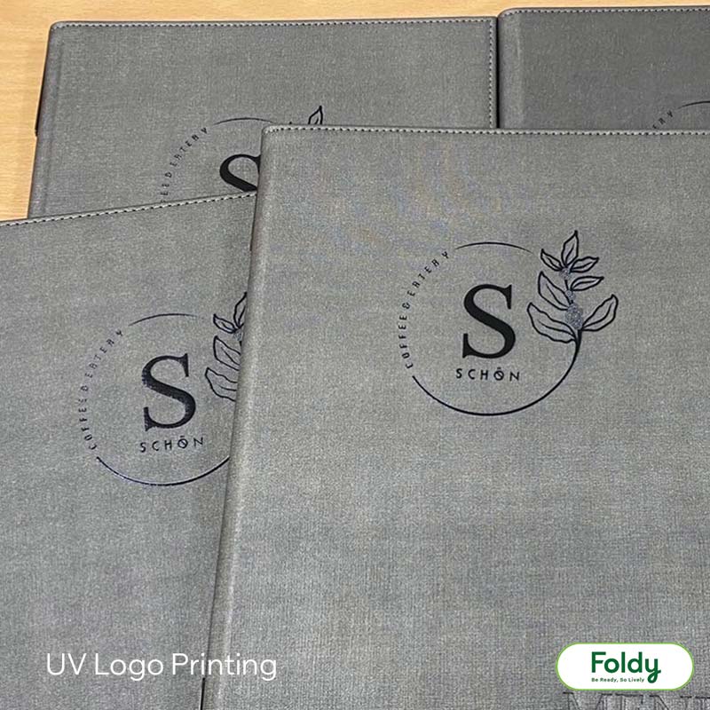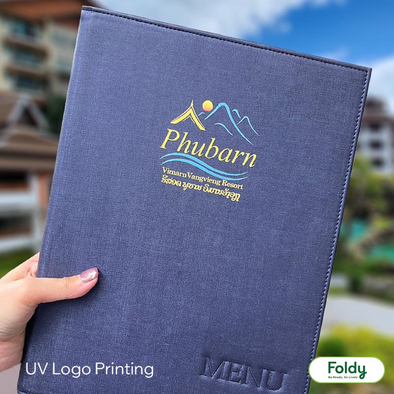 Portfilo Logo UV printing โลโก้ปกแฟ้มเมนู ตัวอย่างผลงาน พิมพ์โลโก้บนปกแฟ้มเมนูอาหาร ที่ผ่านมา สนใจ Logo UV print บนแฟ้มเมนู "ปั๊มจมโลโก้" vs "พิมพ์ UV โลโก้"